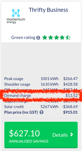 When you upload a Demand tariff bill, look out for the Demand component that will be itemised in the alternative plans compared for you.