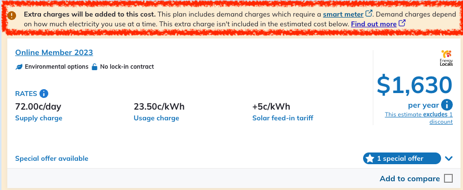 Energy Made Easy and Vic Energy Compare cannot calculate a Demand tariff comparison, so these services are next to useless for energy consumers on Demand tariff plans.