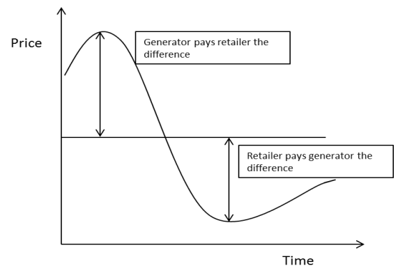 It is not possible for retailers and generators to agree on a private price per MWh and trade in electricity directly because, in the NEM, all electricity must only be bought and sold through the central pool. However, they can agree to a contract that effectively delivers the same outcome: if the spot price is ‘high’relative to the agreed hedge price, the generator agrees to pay the retailer the difference; and if the spot price is ‘low’, the retailer agrees to pay the generator the difference.
