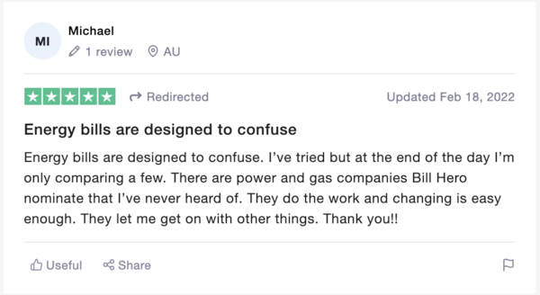 Another month brings more great reviews from happy Bill Hero subscribers. Here’s one of our recent favourites, and you can see them all at https://billhero.com.au/reviews