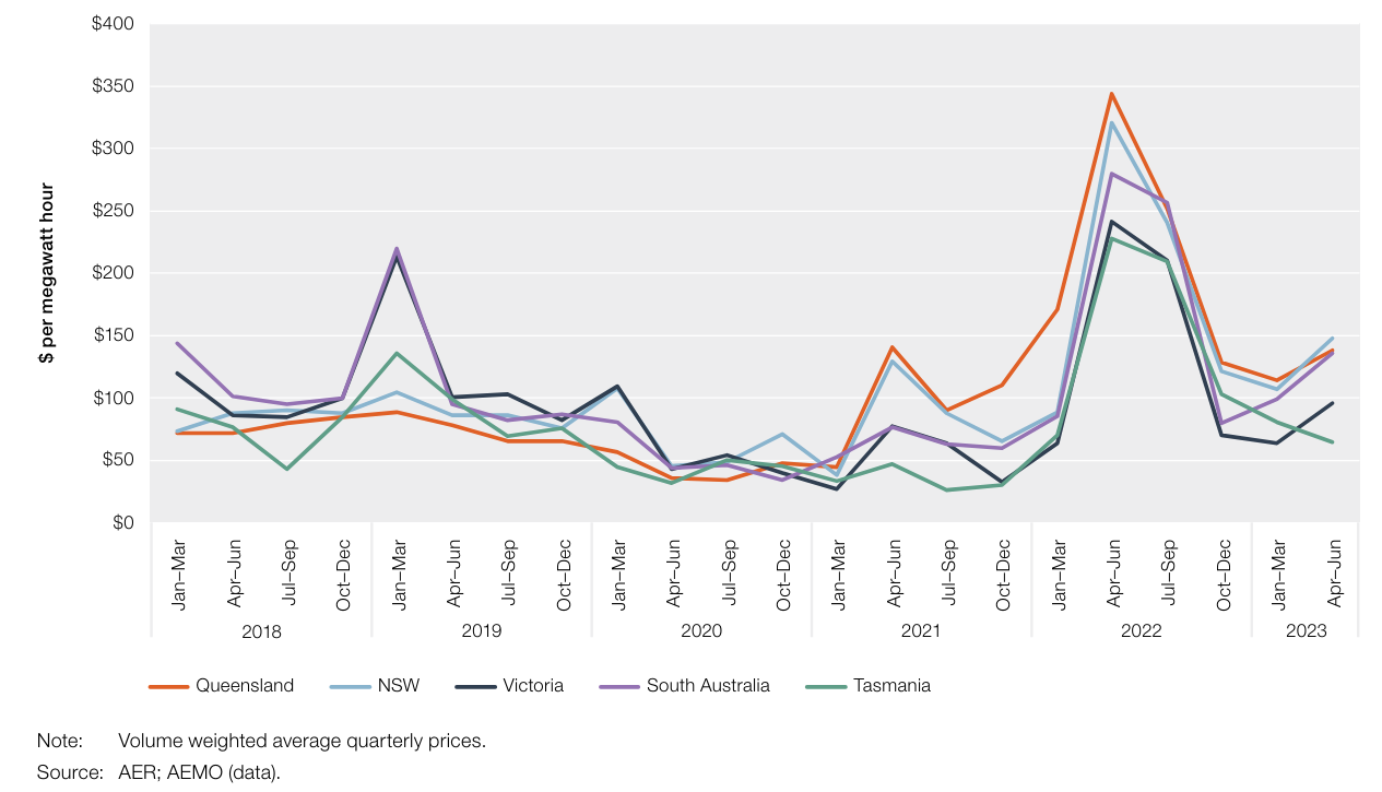 Wholesale electricity prices are well down from their 2022 peaks