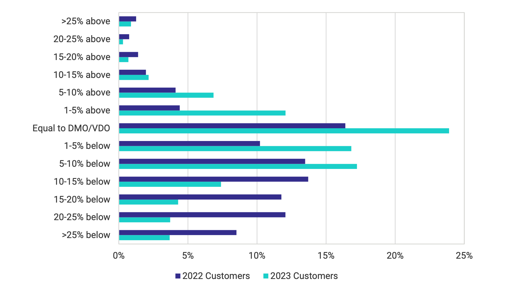 In 2022, the majority of energy consumers were paying prices significantly lower than DMO/VDO. In 2023, the comparative price performance is far worse for consumers. Source: ACCC Inquiry into National Electricity Market, December 2023 Report