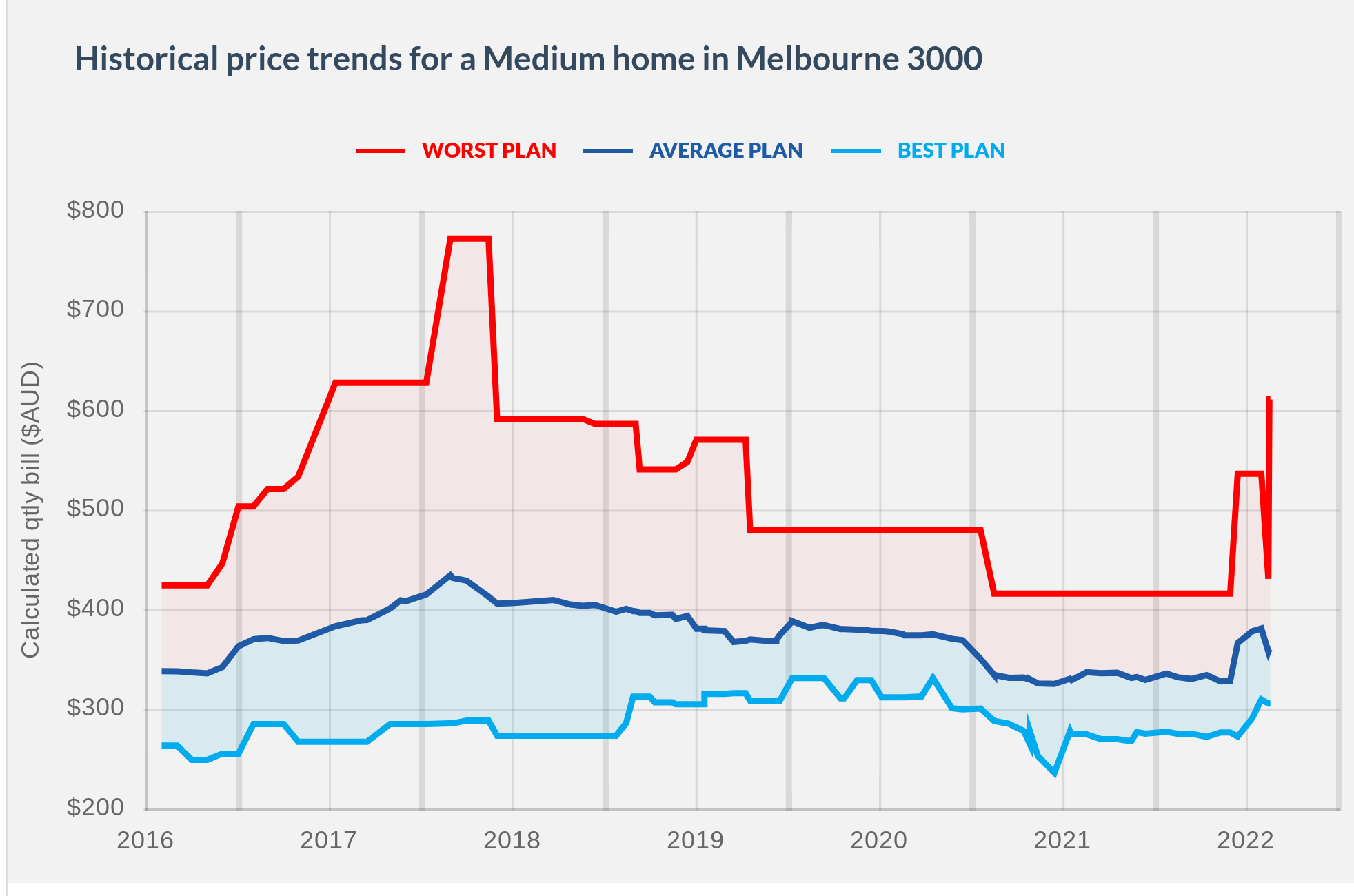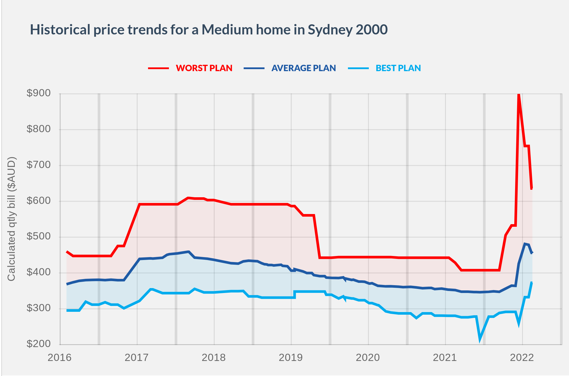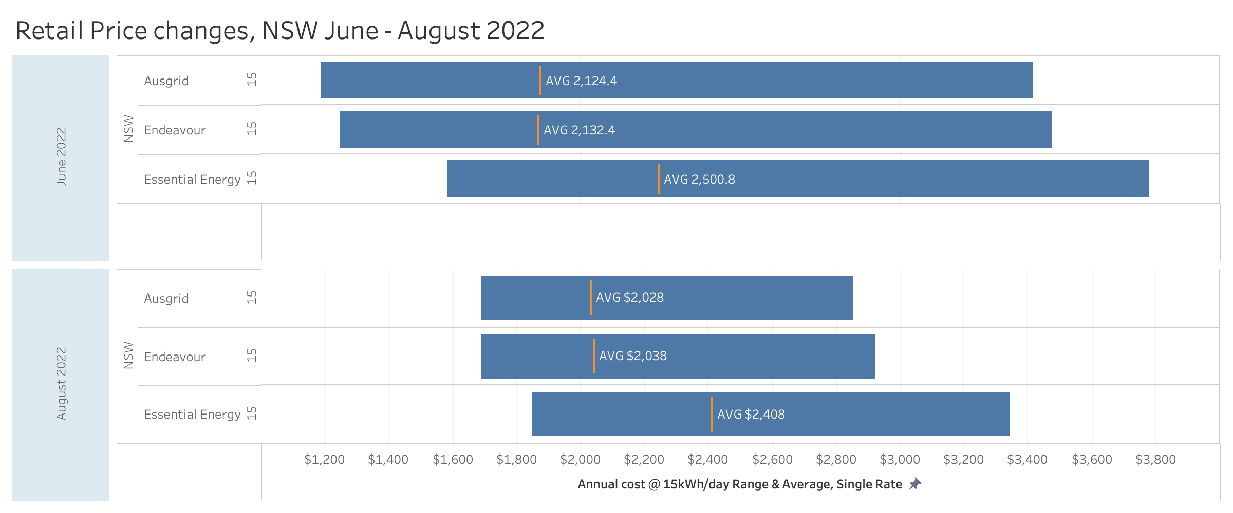Again focusing on NSW, let's see how these retail pricing ranges have shifted over the past couple of months, this time looking at annual pricing.