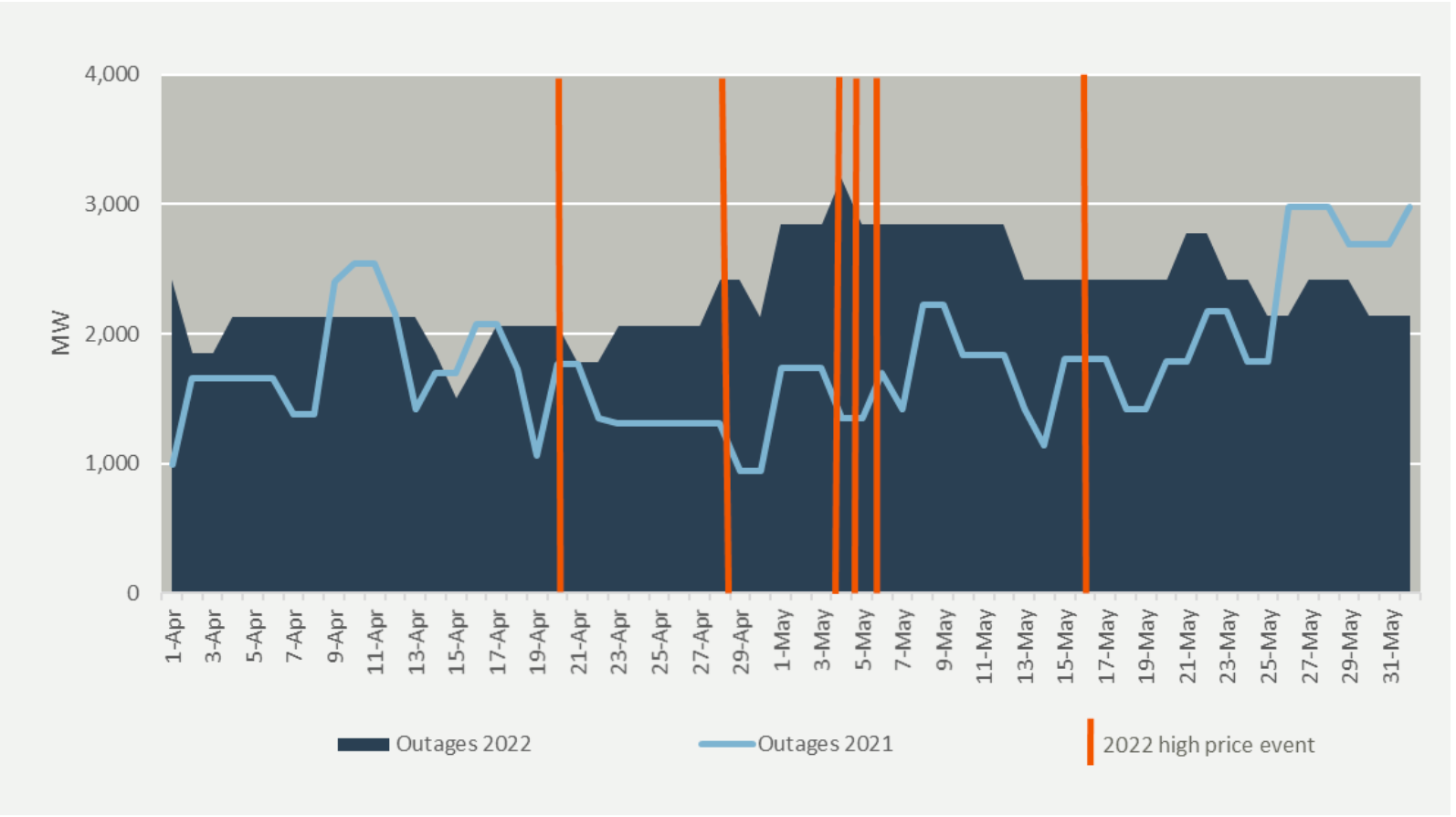 QLD and NSW are reliant on black coal generation, and an ageing coal fleet means increasing coal outages, which are correlated with very high price events of over $5k/MWh