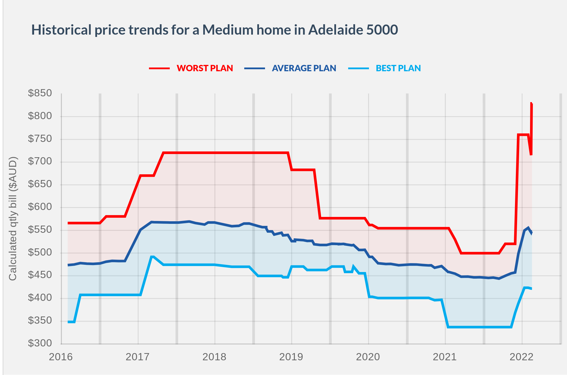 The red line, indicating the highest priced plans, have taken a real leap. Since the introduction of default offer pricing from 1 July 2019, the high price in the market has been set by the relevant default offer for each jurisdiction and network distribution zone. That's no longer the case, as some retailers have priced their market offers even higher.